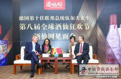 9月12日电 11日,第十届德国总统、全球中小企业联盟全球主席伍尔夫来到酒仙网北京总部进行参观,酒仙网董事长郝鸿峰(中国晋商俱乐部发起理事)全程陪同,向伍尔夫介绍了中国酒类电子商务的发展历程和现状,并就中德贸易、酒类文化等问题进行了交流。