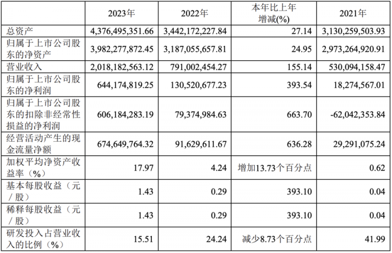 4月25日,科创板上市的创新药龙头企业艾力斯发布了2023年年报以及2024年一季度财报。财报显示,2023年艾力斯实现营业总收入为20.18亿元,同比增长155.14%;实现归母净利润为6.44亿元,同比增长393.54%。