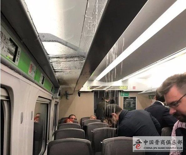 偏偏屋漏又逢连阴雨的是,列车在行驶途中又不明缘由地临时停靠10多分钟。而在另一处车厢里,车辆空调出现故障,发生了渗水情况,车厢瞬间变成了水帘洞。好在日本日立公司在车上的维修人员对空调系统进行了维修。