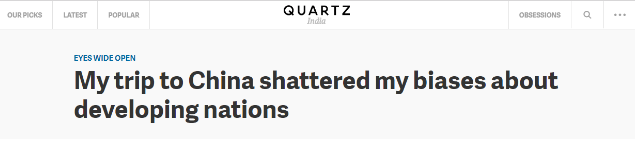 美国石英财经网11月11日发表了题为《中国行粉碎了我对发展中国家的偏见》的文章,作者系阿克沙特·拉西。