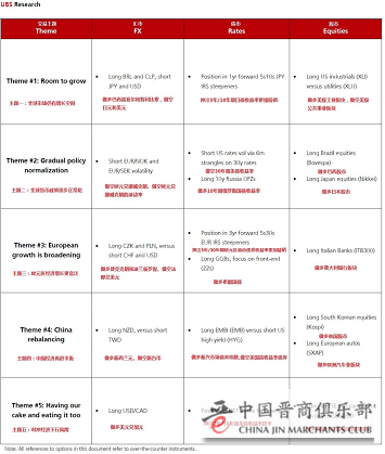 以下是瑞银总结的2018年五大交易主题和19项交易策略图: