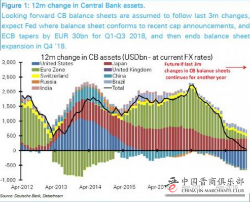 近日,有篇文章称,某一年央行流动资金将从2万亿美元降至零。对此德意志银行表示,转为“逃跑模式”以及波动性上涨的最有可能的原因是2018年年底,所有主要央行的资产负债表的膨胀速度将从每年2万亿美元跌至0。