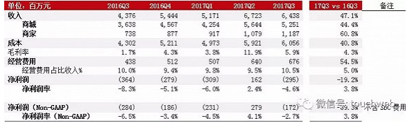 其中,来自商城部分的收入分别为42.54亿元、56.44亿元、52.51亿元。
