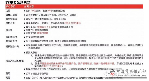 根据TS主要条款,京东物流25亿美元融资之后,当京东物流的股权激励池低于5%时,则从该年度开始,每年新增占公司完全稀释基础上的股本总额的1%,直到股权激励池达到5%。