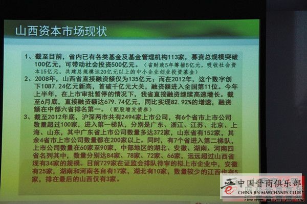 山西汇银安盛投资有限公司总经理李亚栋介绍了公司业务情况,谈到公司成立虽然不久,但是确实感觉到山西的金主观念保守,放不开。