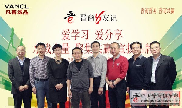 2月22日,由山西商人网、中国晋商俱乐部主办的高端谈话活动“晋商八友记”走进知名电商企业凡客诚品,凡客董事长陈年坐镇,贡天下董事长张和平、碧生源董事长赵一弘、彩虹拼车总经理王国珍、 酒仙网董事长、中国晋商俱乐部发起理事郝鸿峰、财经评论家、中国晋商俱乐部高级顾问侯宁、富怡集团副总经理王俊玲、约你妹、领团网董事长王启亨作为晋商8友出席了本届活动。中国晋商俱乐部发起理事赵贵廷、王向东,中山山西商会副会长李宝荣等近20名嘉宾列席会议。