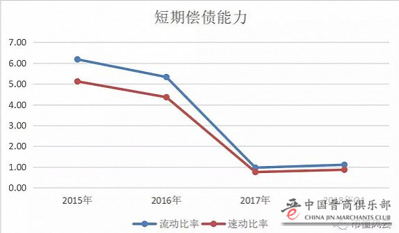 济民制药近3年来流动比率和速动比率显著下滑,特别是2017年以来,持续处于低位。流动比率表示某一时点企业每元流动负债所对应的可用于偿付的流动资产量,一般认为如果你有一元的负债,用两元的资产比会比较好一点,济民制药2015年和2016年,该指标在5以上,表明短期偿债能力极强,但2017年以来该指标在1左右徘徊,说明短期偿债能力大幅下降。