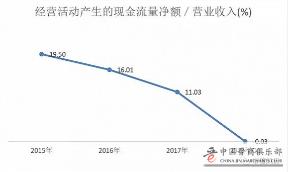 济民制药的经营活动产生的现金流量净额/营业收入(%)这个指标也是近3年来大幅跳水,2018年第一季度已经是负数,说明营业收入创造出的现金流量净额质量越来越差,甚至有净流出的迹象。