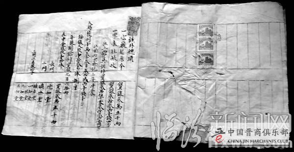 记者看到,来先生收藏的这本账簿,封面为蓝皮,内芯首页贴有两枚壹角、一枚两角的民国印花税票,盖有祁县商会的圆形印章,在主页起首处盖有“大德通”的财神像押首章。