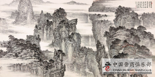 画面里高山大川,峰岚叠嶂,洋溢着壮美之风与阳刚之气,水云交织,草木苍郁,又弥漫着阴柔之韵与灵秀之美,浑厚深邃,气韵生动,引人驻足品,味彰显作者用精湛的笔墨。收藏必升值!