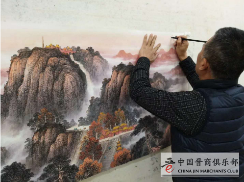 这幅王宁老师的《鸿运当头》泰山画,俯视角度奇景,构图大气,墨色清新,绘泰山群峰起伏,云海穿插其间,石阶古寺若隐若现,整幅佳作追求势、气、韵、意贯融,有靠山可依,事业稳固,富有深意,值得细细品味。