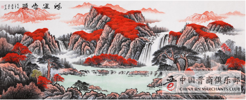 蒋伟老师的《鸿运当头》是一幅精品聚宝盆山水画。山岚峰起,云层环绕,枫林披覆,鸿运普照,溪水潺潺;作品大气磅礴,气势宏大,中心的主山巍峨,高入云端。瀑布从高处流到山下,寓意着财源不断,源水长流。山脚下有两三处房屋,自然而毫无违和感,背靠大山,即有贵人相助,好运连连,真是鸿运当头!无论是装饰还是风水都是绝佳的装饰画之首选!