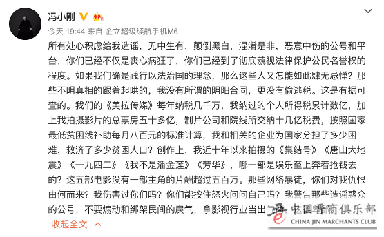 这是冯小刚就“阴阳合同”与偷逃税问题的首次正面回应。