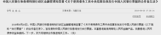 据人民银行网站消息,2018年9月20日,央行和香港特别行政区金融管理局签署了《关于使用债务工具中央结算系统发行中国人民银行票据的合作备忘录》,旨在便利央行在香港发行中国人民银行票据(以下简称“央票”)。下一步,双方将继续合作推进相关工作。