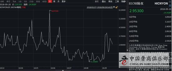 近期,离岸人民币利率高企,一度吸引部分境内资金流出套利。9月20日,人民币Hibor隔夜利率报2.953%,较隔夜Shibor高出43.4个基点。