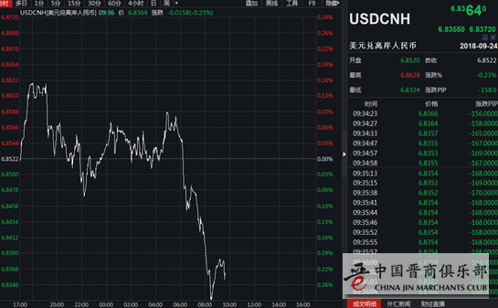 消息公布不久后,离岸、在岸市场人民币汇率企稳回升。截至发稿时间,美元兑人民币报价6.843,下跌104个基点。美元兑离岸人民币报价6.8364,下行158个基点。