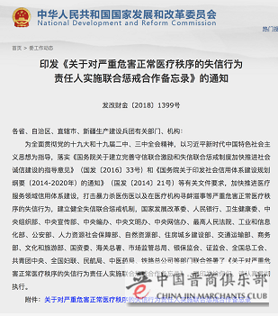 16日,国家发改委、人民银行、卫生健康委、中组部、中宣部等28部门联合发布《关于对严重危害正常医疗秩序的失信行为责任人实施联合惩戒合作备忘录》,将对实施或参与涉医违法犯罪活动,被公安机关处以行政拘留以上处罚,或被司法机关追究刑事责任的严重危害正常医疗秩序的自然人实施联合惩戒。
