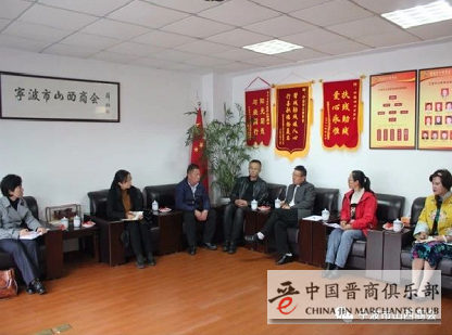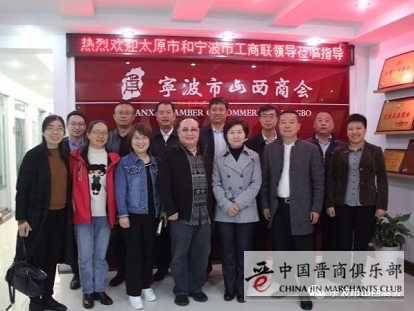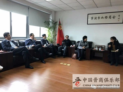 2019年4月10日,太原市工商联党组成员、副主席王书颖、太原市工商联党组成员、副调研员张增辉、太原市工商联组织处处长肖怡红、太原市委统战部经济处副处长王云霞等一行7人调研组在宁波市工商联研究室副调研员王金华的陪同下,来宁波市山西商会(中国晋商俱乐部联合发起机构)开展考察调研工作。商会党支部书记、名誉会长刘志旺、纪检委员、常务副会长周秋芳、副会长王乐、殷石和理事李永丽参加了调研工作的座谈交流会。