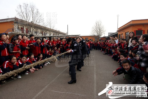 3月7日下午,在第106个国际三八妇女节即将来临之际,尧都区公安局工会、妇委会组织10名女民警到临汾惠祥学校开展“学雷锋献爱心”关爱留守儿童活动。给留守儿童送上体育用品和学习用具,并和孩子们一起开展课余活动。