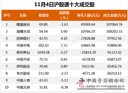 11月4日,北向资金当日成交净买额为2.36亿元。其中,沪股通当日成交净买额为2.38亿元;深股通当日成交净买额为-220.7万元。