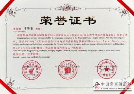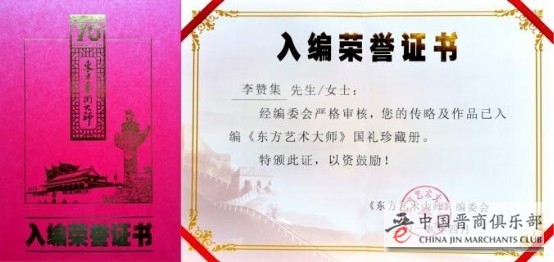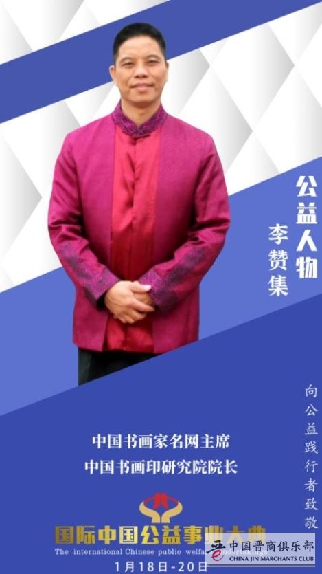 【人物介绍】 李赞集,广东人,大学毕业。世界纪录著名书画艺术家,瑞士皇家艺术学院荣誉博士学位,荷兰皇家艺术学院名誉博士学位,中国书画名家网艺委会主席,中国书画印研究院院长,中国剑光书画院院长,中国书法家协会会员,中国收藏家协会会员,北京书法家协会会员,文化和旅游部国家一级美术师,中国书画摄影家协会理事,中华传统文化发展基金会名誉顾问,收藏天下全国数字电视频道栏目学术指导,孔子美术馆艺术顾问,中央国家机关书法家协会会员,中央国家机关美术家协会会员,国务院国礼艺术家等。荣获“全国学雷锋先进个人”,CCTV年度人物“中国德艺双馨著名书画艺术家”,“2017中国书画十大年度人物奖”,“中国儿童慈善功德碑”,“世界纪录著名书画家慈善公益突出贡献奖”,“品牌中国书画艺术创新奖”,“2019年度国际中国爱心慈善公益奖”,荣获2019影响世界艺术人物、“中国文艺百花奖”、“国家文化巨匠”、“国家文艺领军人物”、“中国艺术金笔奖”、“2020年度最具收藏价值艺术家”、“海峡两岸文化交流大使”、“中匈建交文化使者”、“中阿交流友好使者”等。书画作品入选国家文化和旅游部“当代优秀书画家十人联展”在中国美术馆隆重展出,荣获国家文化和旅游部中国国际科技文化成果博览会书画大型展赛中“金奖”,2020年“以笔为援 以艺战艺”全国艺术家在行动诗书画网络创作大赛金奖等百余次。艺术成就被新华社编入《中华人民共和国年鉴》,国家文化和旅游部编入《中国文化年鉴》,国务院编入《建国六十周年人物成大典》,国家文化巨匠编委会编入《国家文化巨匠》,《全国职业信用评价网》编入全国职业信用人才库,入选《世界联手·共抗疫情》百名艺术家明信片,入选“国家名片”邮政明信片发行。入编《影响世界50位艺术巨匠》封面人物、荣誉主编史册,入编《共和国的建设者》,入编《书画艺术进课堂•时代楷模•教育典范》史册,入选《中国荣耀丝绸上的国礼艺术大师李赞集专辑》,入编《文化复兴、砥砺前行·中华文化复兴践行者走进迪拜大型文献珍藏邮册》,作品入选“中韩墨韵-韩中书画名家交流展”,作品入编意大利教科文书,作品入选第三届中国(福州)世界遗产主题文化博览会美术作品展,人物及书画作品登陆美国纽约时代广场展播,被授予“登陆世界第一屏的当代艺术家”。艺术成就及作品入选300多家海外权威媒体专题报道,入编《新时代文艺经典·名家名作集》巨著封面人物,入编文化和旅游部《中国民族博览精湛艺术献给党》专刊发行,入编《中国美术》杂志,入选中国网“2020年最美人民艺术家”等媒体重点推荐报道,入选第十八届中国当代艺术名家邮品首发式华夏之星第十回提名展书画作品,作品被国家文化和旅游部、中央电视台、中国国家博物馆、中国美术馆、天安门地区管理会等及阿尔巴尼亚共和国驻华大使馆收藏、美国、日本、韩国、新加坡、印尼、马来西亚及港澳台有关政界知名人士和国内外友人收藏。2020年入选代表文化艺术优秀作品走进首都机场展播,书画作品入选中华人民共和国驻匈牙利大使馆“美丽中国·欢乐春节书画名家邀请展”在匈牙利首都布达佩斯展出,作品赢得国际友人一致的好评,被各大主流媒体报道。