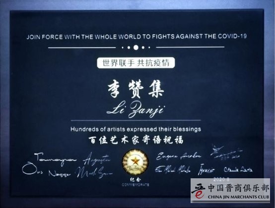 特别是今年的新冠疫情期间,李赞集号召全球艺术家“以艺战疫”,用心创作正能量艺术作品,讴歌白衣战士的无私奉献精神,鼓舞全国人民必将战胜“疫情”的斗志,为了祖国打赢这场没有硝烟的战争助力加油,李赞集将自己百幅书画精品力作,捐赠给中华慈善总会和香港大众慈善总会为抗击疫情做积极贡献。