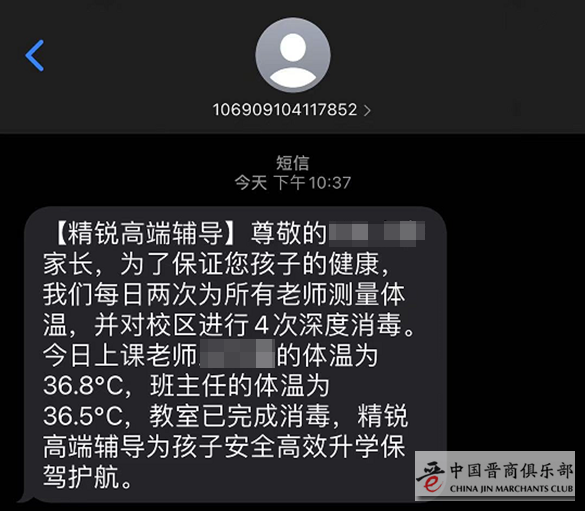 在精锐校区,所有任课老师、班主任老师每天2次统一进行体温测量,学生上课前将体温监测情况,通过短信发送到家长手机,让您安心。