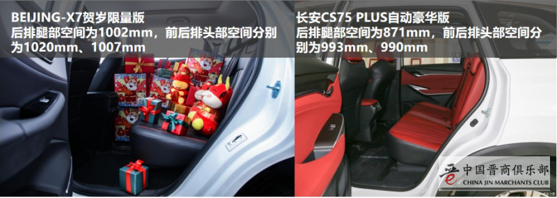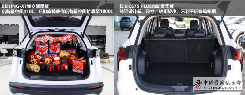 BEIJING-X7贺岁限量版比长安CS75 PLUS自动豪华版谁的空间表现更加出众,这也是春节技能训练中必不可少的技能点之一。在日常注重空间界限的当代人而言,宽敞的空间显得尤为重要。我们的春节向来如此,离不开朋友聚会、大宗的年货购买、拜年的礼物互赠、年后返岗时父母各种物品的准备,因此离不开大空间。