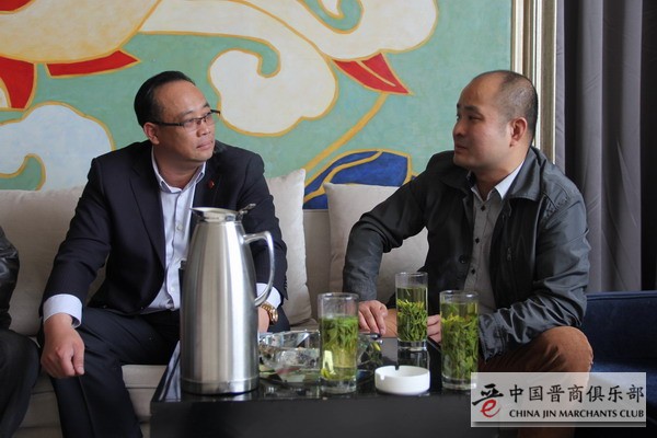 青海省山西商会秘书长赵通海向中国晋商俱乐部秘书长刘文斌介绍了青海省的基本经济特色和发展空间,他表示“非常高兴见到文斌老朋友,文斌和他的山西商人网,以及后来成立的中国晋商俱乐部为全国晋商提供大量的服务,感谢他们来青海山西商会”。