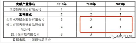 但不容忽视的是,除了清徐与镇江陷入“醋都”之争外,山西醋业龙头企业与国内其他醋业龙头的竞争形势变得“日益严峻”:上市已达20年的镇江香醋代表企业——恒顺醋业国内醋业龙头优势日益稳固,国内调味品龙头海天味业近年来追赶之势亦很迅猛,与此前长时间位居产量第二、三名的紫林醋业、水塔醋业差距越来越小,并于2019年将水塔醋业挤至第四位,而恒顺醋业、海天味业均为A股上市公司。