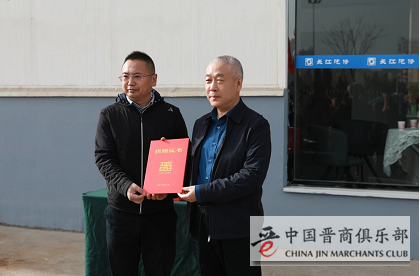 晋城市慈善总会秘书长成允涛为长江实业授予捐赠证书。