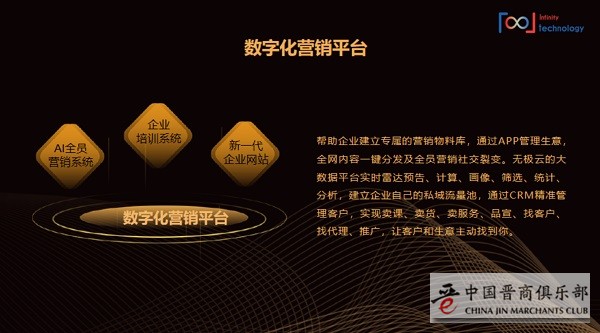 它将内容营销、名片、商城、直播、企业培训、官网和无极云的云计算和大数据相结合,打造出了拥有AI全员营销系统和企业培训系统的新一代企业网站。