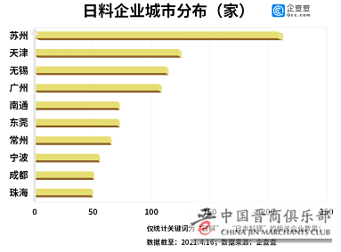 从地域分布来看,广东省的相关企业数量最多,达1093家,占所有企业总数的36%。江苏省和浙江省两个沿海城市的相关企业数量分别为556家和192家居于第二和第三位。辽宁、天津和山东的日料企业均超过100家。
