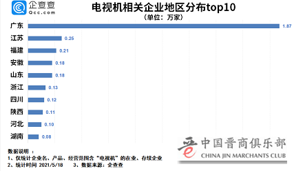 最近几个月,与去年夏天相比,大尺寸电视的价格已经飙升了约30%,涨价是当前芯片危机的直接结果。企查查数据显示,目前我国共有4.3万家电视机相关企业,广东省以1.87万家企业高居第一,江苏、福建分列二三位。
