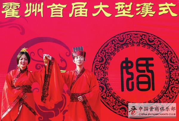 8月9日,山西省霍州市,演员在展示汉式传统婚典礼仪。当日,在山西省霍州市署衙广场前,一场的礼仪繁复的汉式集体婚礼秀吸引了众人目光。20对演员扮演汉代新人,身着华美的汉式袍服,依次进行了交拜、对席、沃盥、同牢、结发、执手礼等传统礼仪,以典雅、庄敬为气韵,追本溯源,再现了中华传统婚典文化的独特魅力,同时倡导文明节俭新风尚。