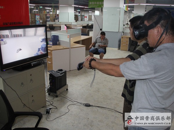 中国晋商俱乐部秘书长刘文斌、常务副秘书长马文青、副秘书长韩青峰在淄博市副会长钱兆有、宣传专员崔晓伟的陪同下,参观了淄博市晋商商会秘书长李建琴单位山东与非门动画传媒有限公司,并体验了其公司最新VR项目。