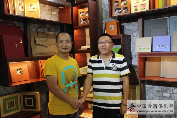 边志英向中国晋商俱乐部秘书处一行介绍了潍坊含弘工艺品有限公司的相关情况。他讲到:我们公司主要从事相框、相册的生产与销售,现已与全国700多家影楼合作。