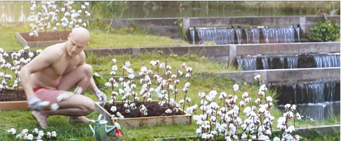 为了宣传天然环保概念,让模特穿着小内内在花园里灌溉采摘;男模还开开挖掘机,疯狂碾压,春光无限哈。