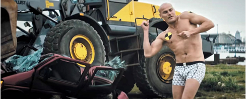 A-dam 《If you have balls》这支广告里,男模穿着内衣做饭,还拿小内内榨汁,传达产品原料的天然属性 。