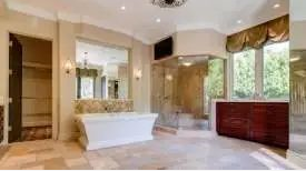 因为有窗户的因素,卫生间很亮堂。据说这样的卫生间在豪宅中有不下10个。毕竟800平米的豪宅每一间卧室加上客厅都会配备卫生间的。