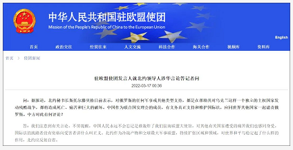据中国驻欧盟使团网站17日消息,驻欧盟使团发言人就北约领导人涉华言论答记者问。