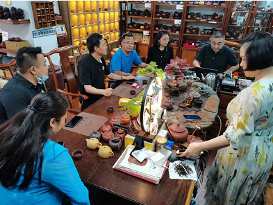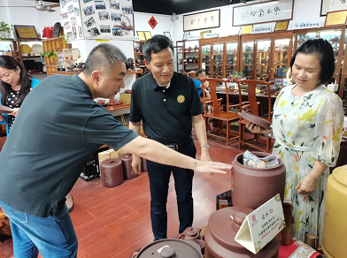 解总向商会一行介绍紫砂壶工艺