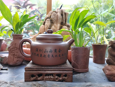 解总向副会长兼常务副秘书长陈惠勇介绍紫砂产品