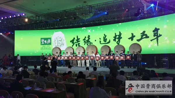 2015年9月17日,碧生源 “结缘 追梦”15周年庆典在北京隆重举行,中国晋商俱乐部副秘书长、中视华腾董事长石磊代表中国晋商俱乐部出席祝贺。