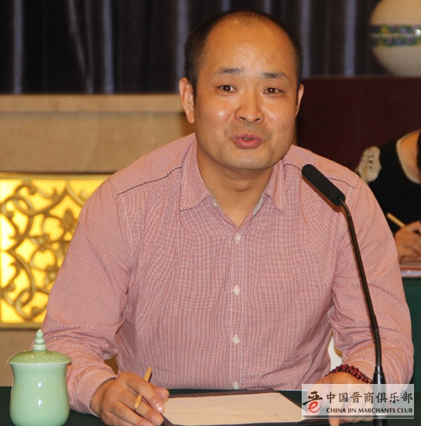 中国晋商俱乐部秘书长刘文斌在会议上对个商会报告了中国晋商俱乐部的工作情况,他表示中国晋商俱乐部成立于2013年6月,至今为止,中国晋商俱乐部共有57家联合发起机构。中国晋商俱乐部是晋商O2O联盟的一部分,而晋商O2O联盟是一个资源整合的服务平台,他的战略规划有第一、中国晋商俱乐部、山西商人网都是以人为本的服务平台。第二、晋商优品是以商品为本的服务平台,任何一个人关注晋商优品后可通过它的平台搜寻到附近50公里内的晋商商家的企业简介、办公地点、办公电话等基本信息,是一个移动的“山西会馆”。第三、成功举办6届的晋商年会,会在10月份举办第七届晋商年会的新闻发布会,在会上还会同时宣布两件事情,第一、中国晋商俱乐部将联合山西省艺术家一同成立中国晋商俱乐部艺委会;第二、中国晋商俱乐部将成立晋商金融智库。
