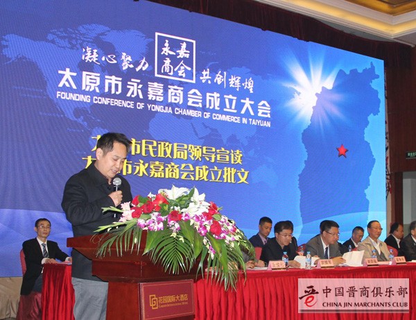 2016年10月29日下午,太原市永嘉商会(中国晋商俱乐部联合发起机构)成立大会在太原市花园大酒店隆重召开,来自社会各界共300余人参加了本次盛会。