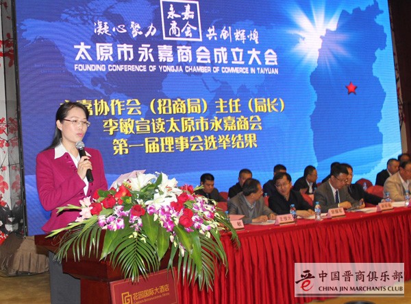 永嘉县协作办主任、招商局局长李敏宣读成立大会选举结果。