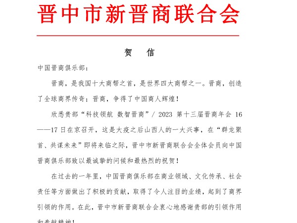 晋中市新晋商联合会预祝2023第十三届晋商年会圆满成功