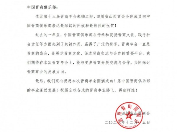 四川省山西商会预祝2023第十三届晋商年会圆满成功