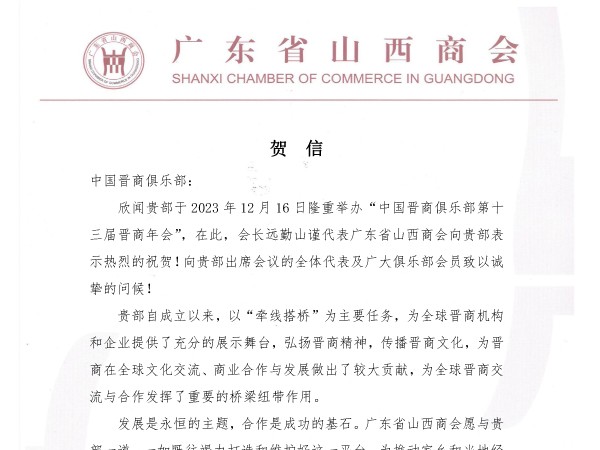 广东省山西商会预祝2023第十三届晋商年会圆满成功